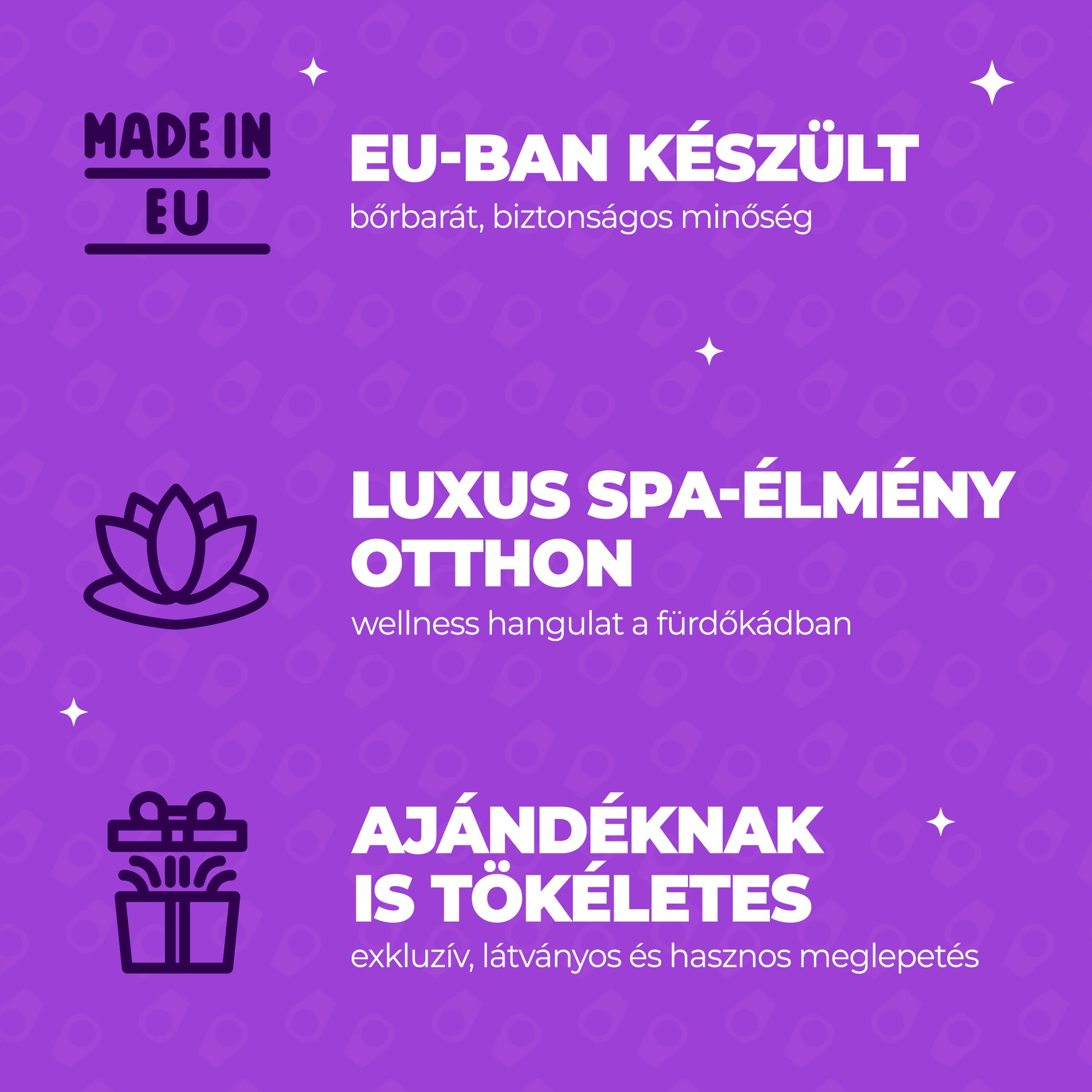 A fürdő pezsgése és illata azonnali mosolyt csal az ajándékozott arcára. Egy élmény, amit mindenki szívesen átél – férfi és nő is.
